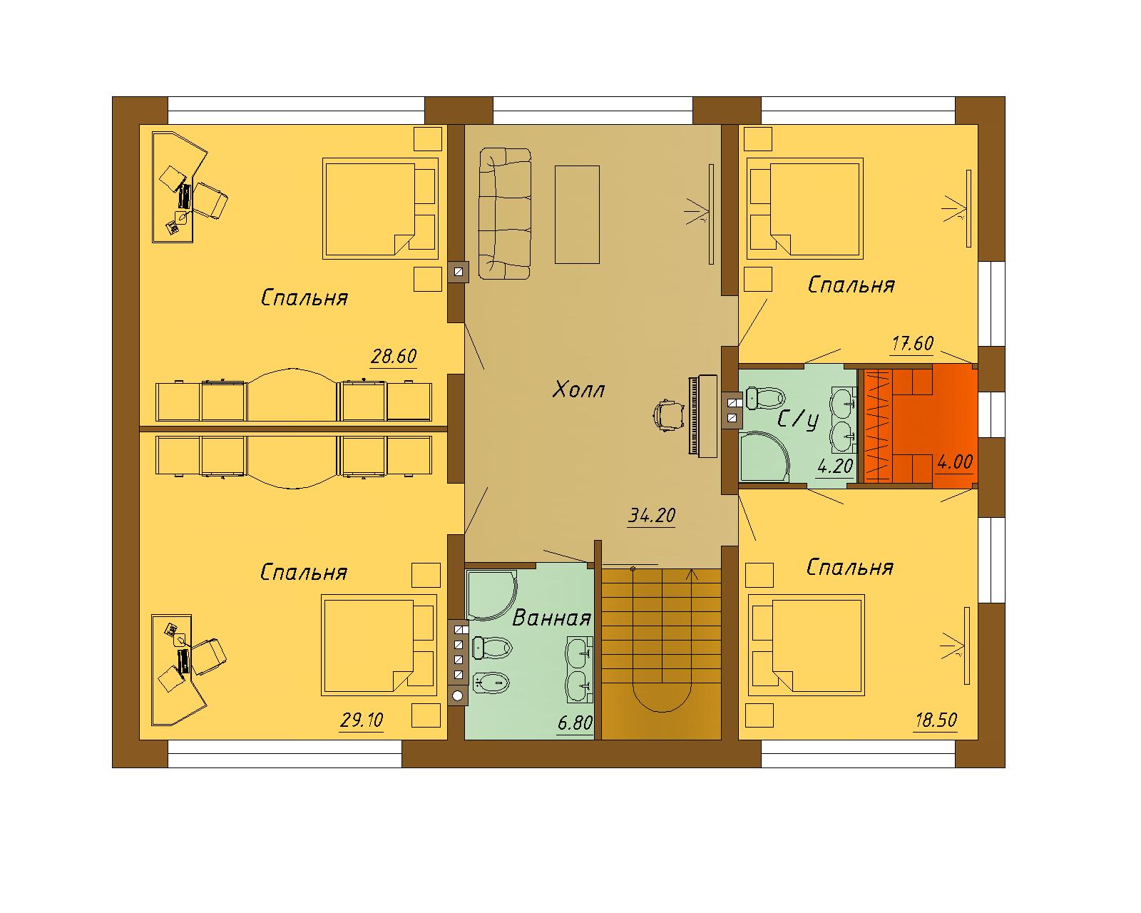 - Поэтажные планы (со схематичной расстановкой мебели)