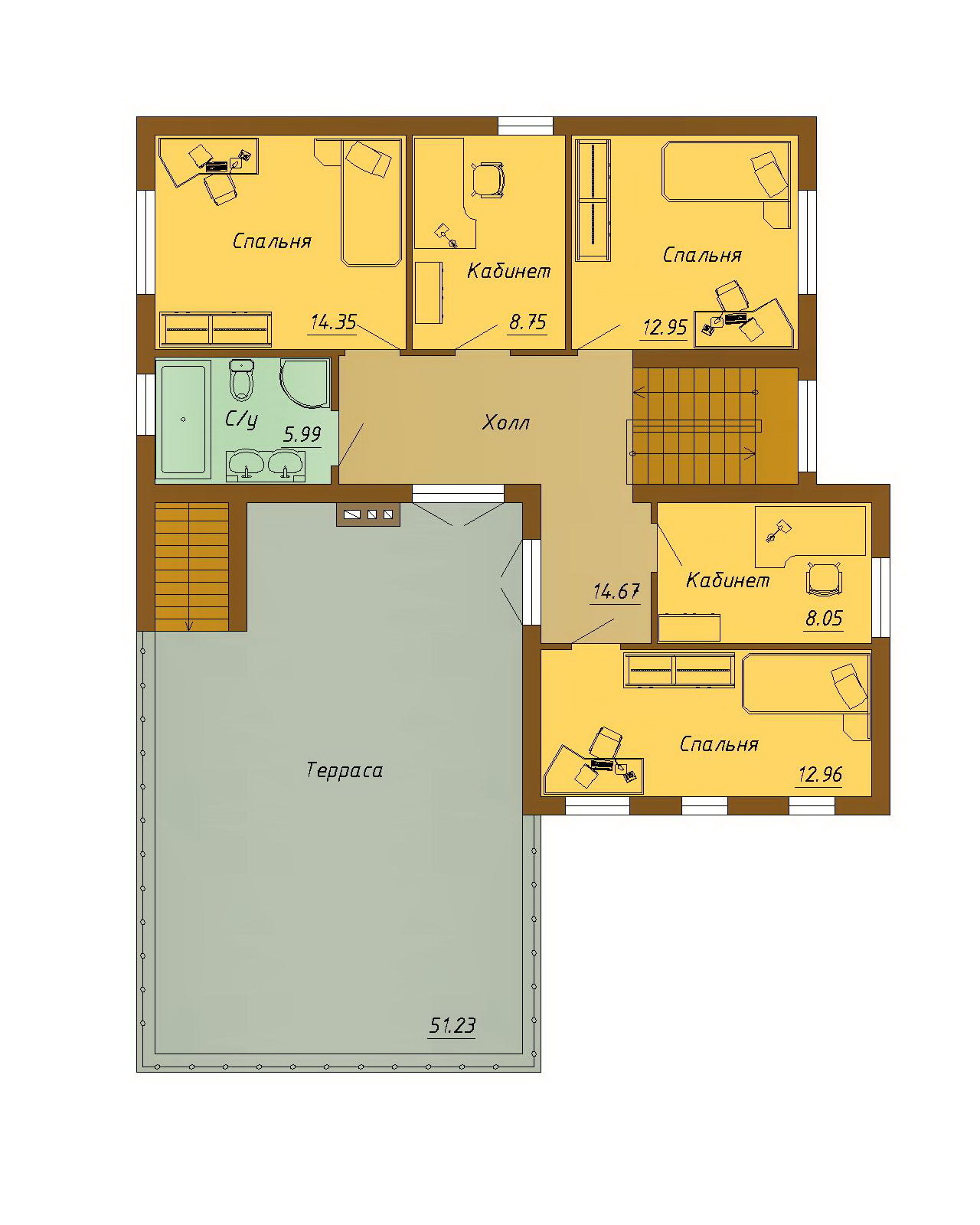 - Поэтажные планы (со схематичной расстановкой мебели)