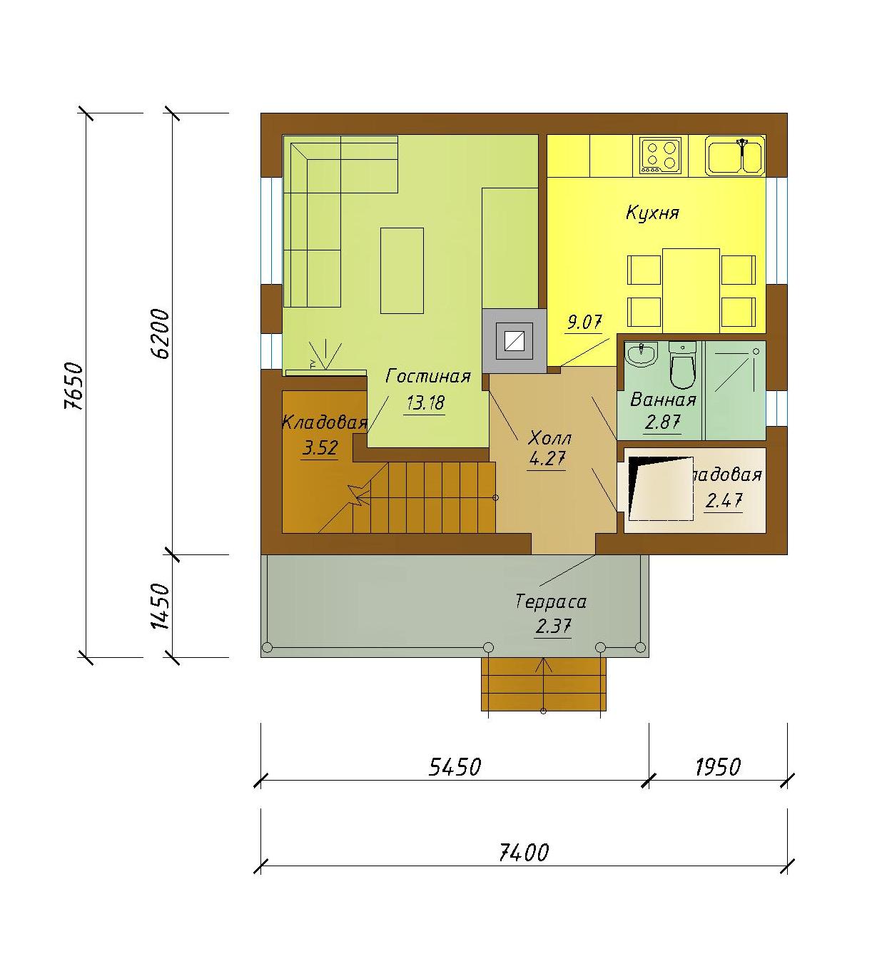 Гальштат – проект дома для дачи. Идеально подходит для строительства на дачных и садовых участках. Небольшие габариты помогают значительно снизить затраты на строительство. Печное отопление позволяет использовать данный дом круглогодично.