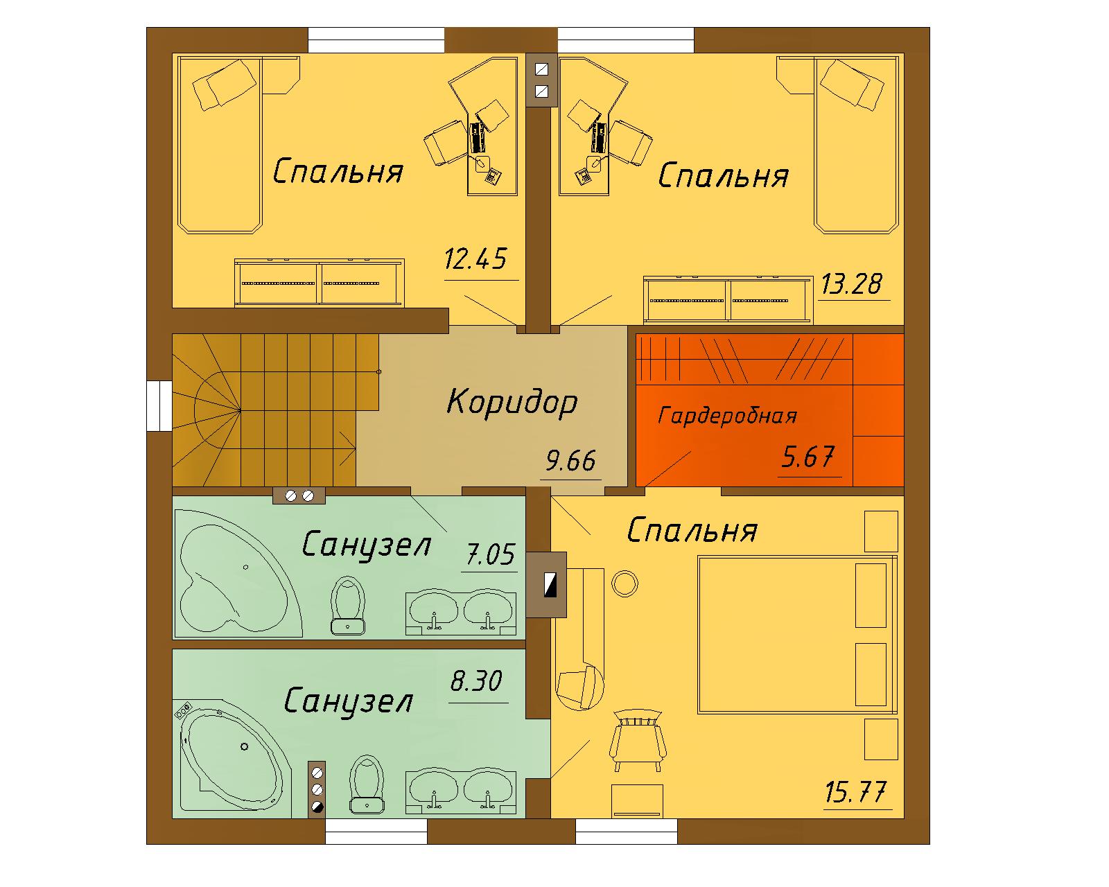 Готовый проект двухэтажного дома с террасой и четырьмя спальными комнатами