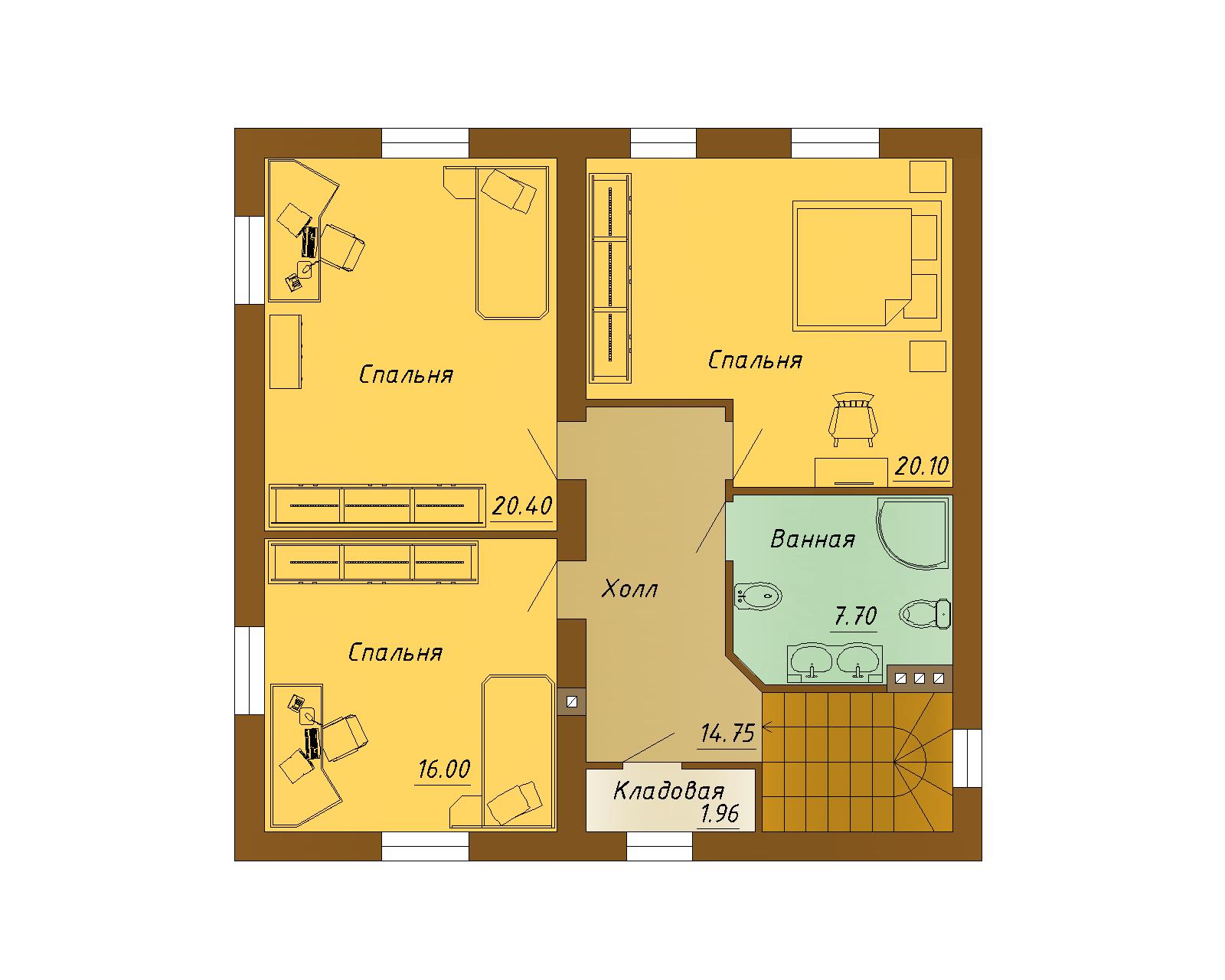 Готовый проект двухэтажного дома с четырьмя спальными комнатами.