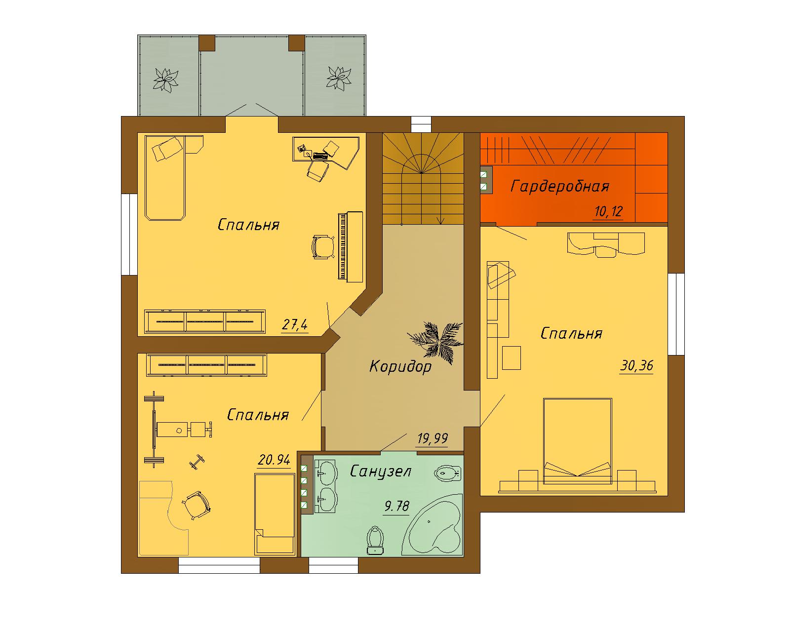 Мюнхен - двухэтажный дом с полноценным вторым этажом в классическом стиле. В доме есть разделение на гостевую и спальную зоны, они соответственно расположены на первом и втором этажах. На втором этаже размещены 3 большие спальни и ванная комната, одну из спален оборудована удобной гардеробной.