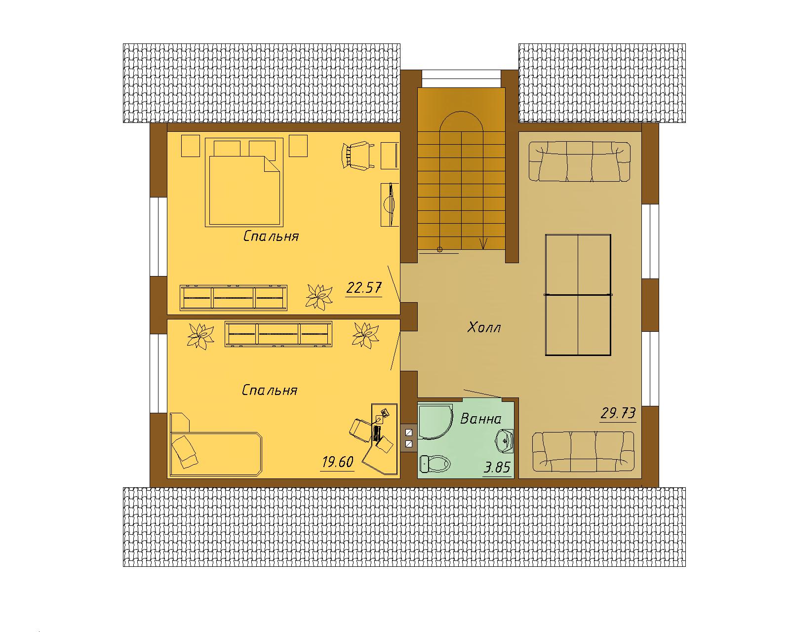 Готовый проект двухэтажного дома с тремя спальными комнатами.